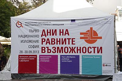 Първото национално изложение на открито под надслов „Дни на равните възможности” се проведе в градинката пред Народен театър „Иван Вазов” в гр. София в периода 28-30.09.2013 г.