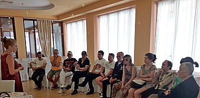 Във връзка с проекта на НФРИ „Устойчива заетост чрез повишаване на социалния капитал”, финансиран от Агенцията за хората с увреждания се проведоха две изнесени обучения в гр.Обзор и едно изнесено обучение в гр.Св.Влас, за общо 34 работници и служители с трайни увреждания от „Стопански дейности КЦМ” ООД – гр.Пловдив, „Мальовица” ЕООД – гр.Самоков, „Мир Добрич” ООД – гр.Добрич и „Мир-И” ЕООД – гр.Етрополе. Участниците проведоха тренинг в модулите: „Техники за ефективно общуване” и „Техники за релаксация и подкрепа на другите в преодоляване на стреса” овладяване на знания и умения за разпознаване, управление и подобряване на собствения стил на общуване и предпочитания стил на общуване на другите с цел повишаване на ефективността на екипното взаимодействие и субективното психично благополучие в смесените колективи на специализирани предприятия. Целта на тренинга бе да се фокусира върху развитието на личния потенциал и комуникативен модел на участниците, намаляване на напрежението и стреса и взаимна толерантност, които да бъдат прилагани в ежедневието и да стимулират професионалната безконфликтна среда в специализираните предприятия в посока изграждане на баланс, интеграция и сплотеност.