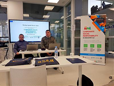 Съпътстваща работна среща „Повишаване на привлекателността на работата в социалната и солидарна икономика успоредно с бизнес целите” се проведе на 25 и 26 март 2022 г. в гр.Мурсия, Испания в залата на хотел Cetina. Участие в срещата взеха представители на специализирани предприятия от „Стопански дейности КЦМ” ООД, Пловдив, „Мальовица” ЕООД, Самоков, „Мир И” ЕООД, Етрополе, „Тера Суап” ЕООД, Враца, „Нике Груп” ООД, Годеч, „Велдия Дизайн” ЕООД, София и „Вапцаров” АД, Карлово и изследователи от партньорството по проект Адаптиране на стратегията за социална отговорност към индустрията 4.0".
