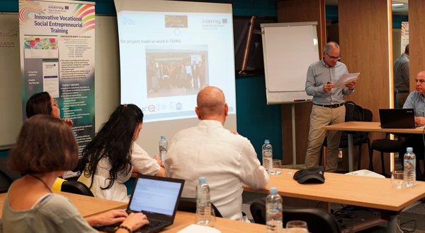 На 26 и 27 ноември 2018 година в гр. София се проведоха събития по проекта с международно участие, в които експерти от България, Гърция, Македония, Албания и Кипър обсъждаха постигнатото по проект INNOVENTER. Целта на срещите бе да се обмени опит и експертиза относно начините, по които ще се организира разширения цикъл за дистанционно обучение по Програмата за социално предприемачество, чиято пилотна фаза предстои да се реализира в петте страни от обхвата на Програма Балкани-Средиземно море 2014-2020, финансираща проекта. Основната идея на програмата е да предложи професионално ориентирано обучение по социално предприемачество, така че предприемачите да могат да прилагат иновации като същевременно ангажират хора в неравностойно положение като служители. Експерти от партньорските организации споделиха своите виждания относно иновативния начин на обучение, който предстои да се приложи, посредством уводни сесии, допълващи сесии за дистанционно обучение чрез електронните инструменти /електронната платформа www.innoventer.eu и апликация за смарт устройства чрез Google Play/ и обучителни сесии от съвместен екип с включване на широка група от обучаеми по места. В дискусията особено ценни бяха вижданията на учителите от средното образование, които дадоха своята гледна точка към пилотната фаза на обучителната програма. Водещият партньор – Национална федерация на работодателите на инвалиди представи напредъка по предложенията за включване на нова професия и нови специалности в Списъка на професиите за професионално образование и обучение и нови позиции в Националната класификация на професиите и длъжностите в България. Представители на МТСП направиха кратко представяне на Закона за предприятията от социалната и солидарната икономика в контекста на възможностите, които се откриват пред социалното предприемачество в България. През втория ден от срещите акцент бе Планът за създаване на мрежа за обучително сътрудничество в България и обратната връзка от участниците относно тяхното включване в нея. От заявения интерес се видя, че мрежата има потенциал и предстои нейното неформално структуриране. Включването е без ограничения и на доброволен принцип, споделяйки идеите на INNOVENTER. В дискусиите и разговорите по време на двата дни бяха споделени добри практики, които ще се полват по време на пилотната фаза на обучението.