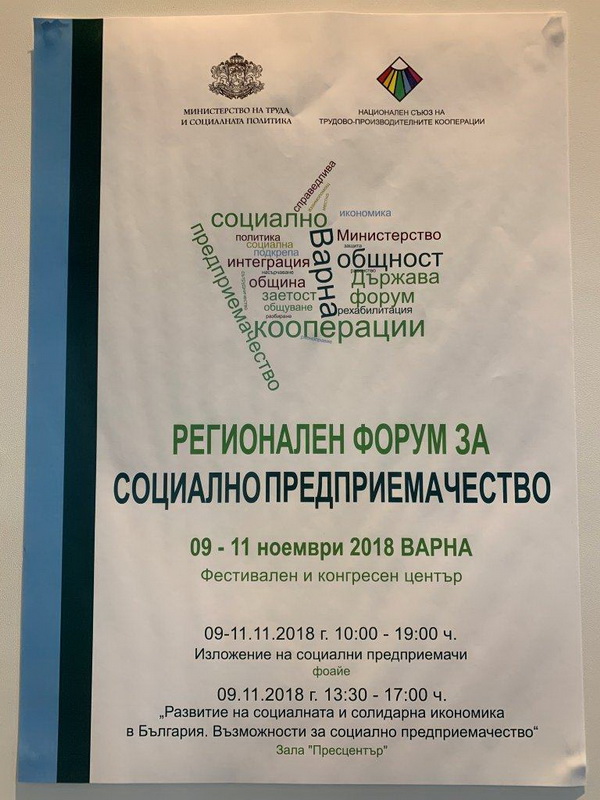 В периода м.ноември – м.декември 2018 г. се проведоха регионални форума за социално предприемачество за стимулиране и популяризиране на дейността на социалните предприятия и кооперации, които предоставят локално своите продукти или услуги. Регионалните форуми целят идентифицирането и популяризирането на социалното предприемачество сред местната общност и превръщането в традиционна проява, която да се развива постепенно, обхващайки всички региони в България. - Регионален форум за социално предприемачество на 9-11 ноември 2018 г. в гр.Варна, в зала Пресцентър на Фестивалния и конгресен център. Форумът се проведе с две събития – изложение-базар на стоки и кръгла маса в два панела „Социално предприемачество, социална цел, социална добавена стойност” и „Регионални предизвикателства пред развитието на социалната икономика”. - Регионален форум за социално предприемачество на 11-13 декември 2018 г. в гр.София, зала Универсиада. Форумът включваше три събития: - Изложение-базар на стоки и услуги на социалните предприятия и кооперации; = Кръгла маса на тема „Особености на развитието на социалната икономика в екосистемата на големия град” на 12.12.2018 г. в УНСС; - Научно-практическа конференция „Социални иновации и научно-приложни аспекти на социалната икономика” на 13.12.2018 г. в УНСС. Това са първите регионални форуми, извън Европейският ежегоден панаир в Пловдив, организирани на месно ниво за популяризиране на стоките и услугите произвеждани и предоставяни от социалните предприятия за хора с увреждания в България. Участие в проявите в двата форума взеха представители на общините в региона, регионалните представителствана държавните институции, ангажирани с провеждането на държавната политика за развитие на социалното предприемачество, представители на научните среди и местната общност, работодатели, академични среди, граждани от регионите. По време на събитията, част от регионалните форуми, федерацията запозна посетителите с проекта Иновентър, финансиран по Програма „Балкани – Средиземно море 2014 – 2020“, една от двете програми на Европейския съюз за транснационално сътрудничество, наред с Програма „Дунав“, в които Република България участва през периода 2014 – 2020 г. Акцент в разговорите бяха възможностите за включване в обучителната платформа по проект Иновентър. Посетителите получиха от рекламните дипляни на консорциума по проекта и се запознаха с идеята на проекта за иновативна програма за професионално обучение. Участието в двата регионални форума за социално предприемачество допринесе за ползотворни контакти и включване на потенциални участници в иновативния курс по социално предприемачество в сферата на професионалното образование и обучение по проекта INNOVENTER. По този начин федерацията създаде предпоставки за популяризиране на създадената иновативна програма за професионално обучение и включване на повече заинтересовани участници в онлайн обучение и мобилно приложение за дистанционно учене по INNOVENTER.